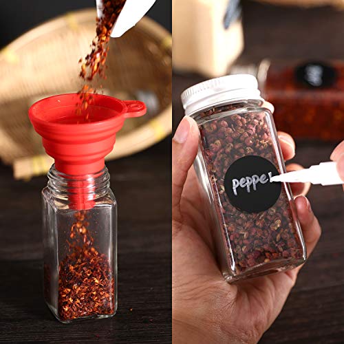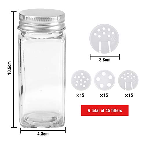 LICHT EN PRAKTISCHE – Het volume van de kruidpotten: 120 ml 4 ounces, hoogte van de opslagpotten: 10,5 x 4,3 cm, diameter van de glazen potten bodem: 4,5 x 1,8 cm, zeer licht en compact, gemakkelijk op te bergen.