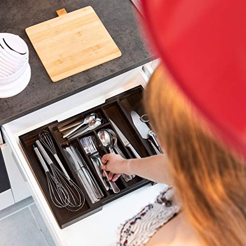 Specification: Relaxdays Bestekbak lade, uittrekbaar, variabele breedte, 5 tot 7 vakken, bamboe, HBT: 5x48x33,5cm, donkerbruin