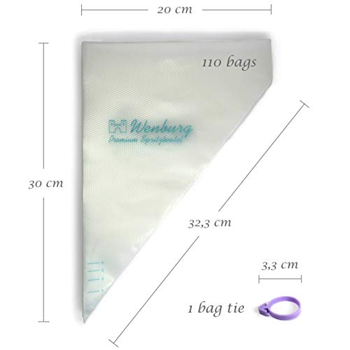 Specification: Wenburg 110 grote spuitzakken, professionele wegwerpspuitzakken voor spuitmonden, bakken, kromtrekken van fondant…