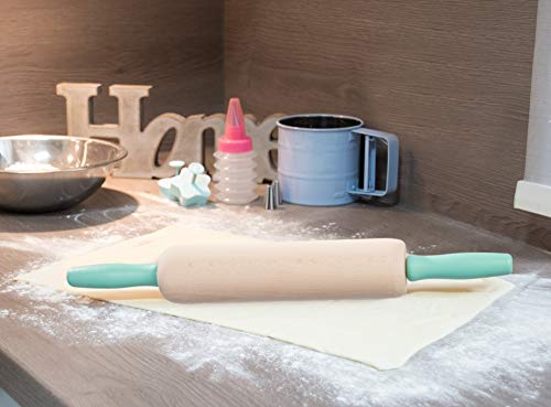 Met doorlopende stalen as en vlakke houten rol voor moeiteloos glijden over het deeg en gelijkmatig uitrollen van de deegbodem, aanbevolen om te voorkomen dat het deeg plakt